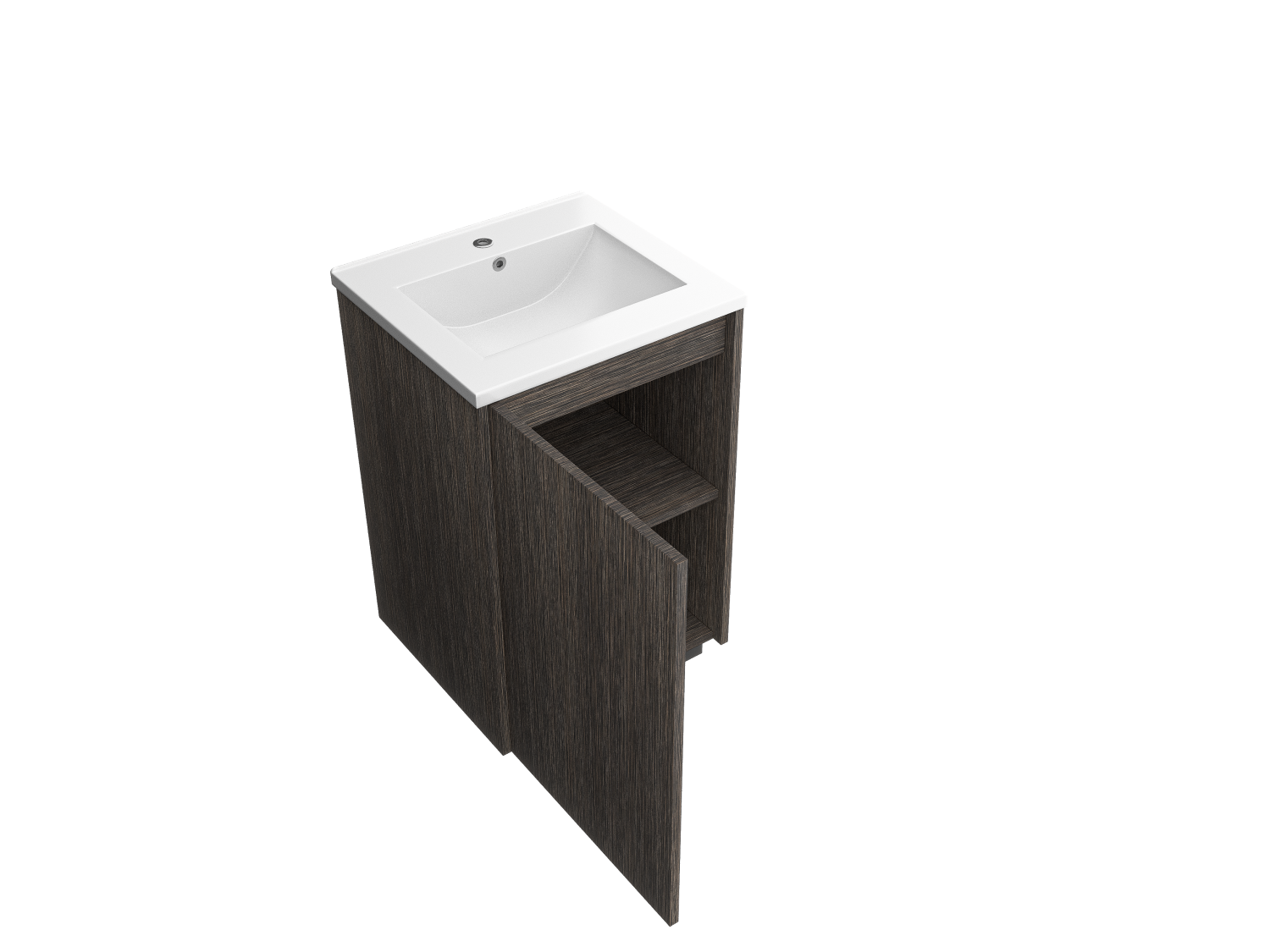 A modern freestanding sink with a single-door wood facade, designed for both style and convenience in contemporary bathroom interiors.